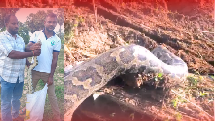 இந்த சம்பவம் 22.10.2025 அன்று இடம்பெற்றுள்ளது குறித்த காணியின் உரிமையாளர் தனது தோட்டக்காணியில் பாரிய பாம்பினை கண்ட நிலையில் வனஜீவராசிகள் திணைக்களத்திற்கு தகவல் கொடுக்கப்பட்டுள்ளதை தொடர்ந்து சம்பவம் இடத்திற்கு விரைந்த வனஜீவராசி திணைக்களத்தினர் குறித்த வெண்கிணாந்தி பாம்பினை மீட்டுள்ளார்கள் இந்த பாம்பு இரை ஒன்று உட்கொண்ட நிலையில் காணப்பட்டுள்ளது.