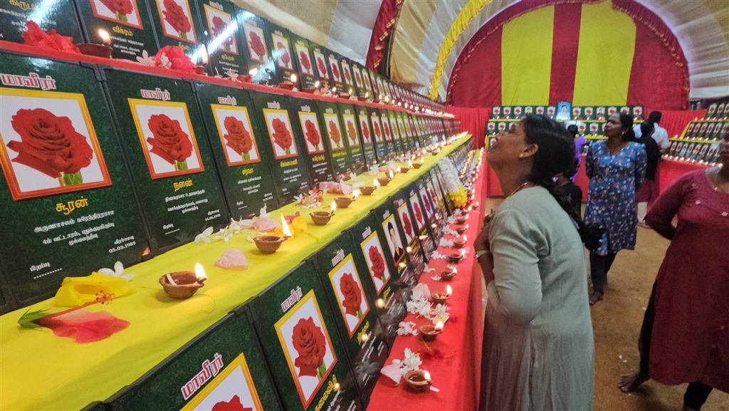 முல்லைத்தீவு புதுக்குடியிருப்பு பேருந்து நிலைய வளாகத்தில் சிறப்பாக அமைக்கப்பட்ட பந்தலில் முல்லைத்தீவு மாவட்டத்தில் உயிரிழந்த மாவீரர்களின் விபரங்கள் அடங்கிய படங்கள் வைக்கப்பட்ட மண்டபம் இன்று மக்கள் அஞ்சலிக்காக திறந்துவைக்கப்பட்டுள்ளது.