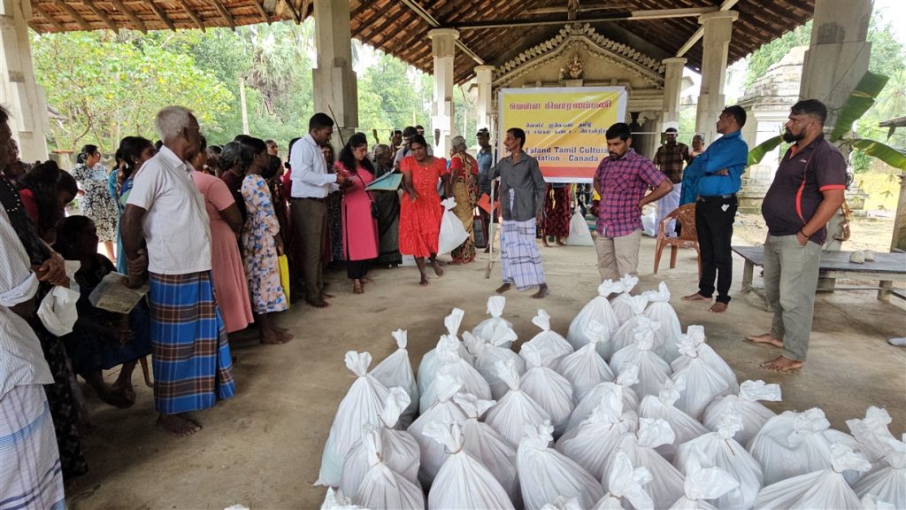 புதுக்குடியிருப்பு பிரதேச சபையின் தவிசாளர் வே.கரிகாலன் தலைமையில் ஒழுங்குபடுத்தப்பட்ட கனடா மொன்றியலில் வெஸ்ட் ஐலென்ட தமிழ் கலாச்சார சங்கத்தின் முழுமையான நிதிப்பங்களிப்பில் இந்த உலர் உணவு பொதிகள் வழங்கிவைக்கப்பட்டுள்ளது.