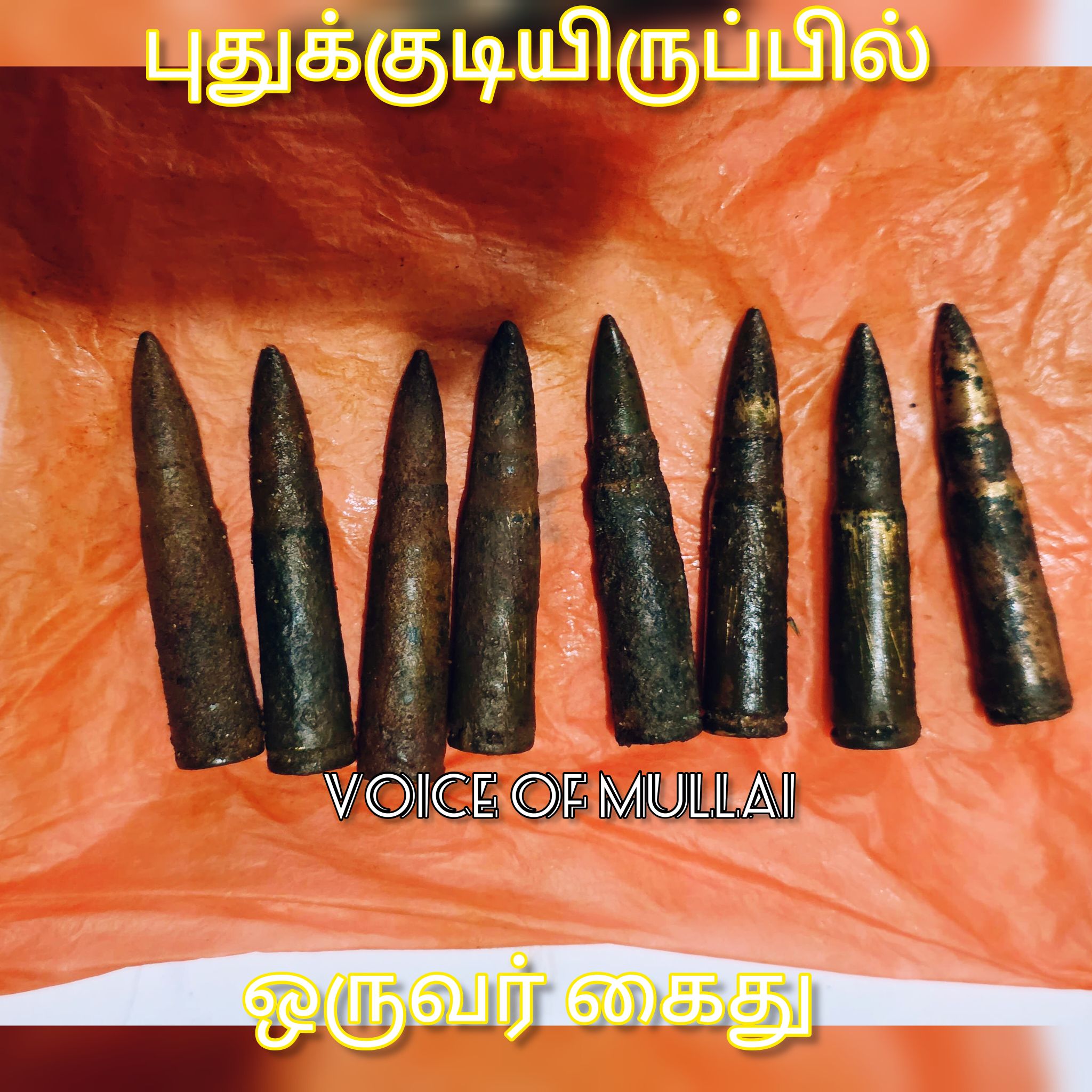 முல்லைத்தீவு புதுக்குடியிருப்பு பிரதேசத்திற்கு உட்பட்ட பகுதியில் நேற்று(11.01.2026) இரவு 8.30 மணியளவில் உந்துருளியில் பயணித்துக்கொண்டிருந்த நபர் ஒருவரை சந்தேகத்தின் பெயரில் கைதுசெய்து சோதனையிட்ட போது அவரிடம் இருந்து 8 துப்பாக்கி ரவகைள் மேற்கொள்ளப்பட்டுள்ளது.