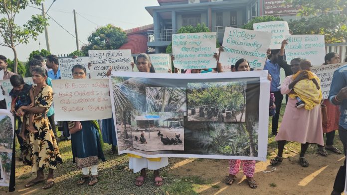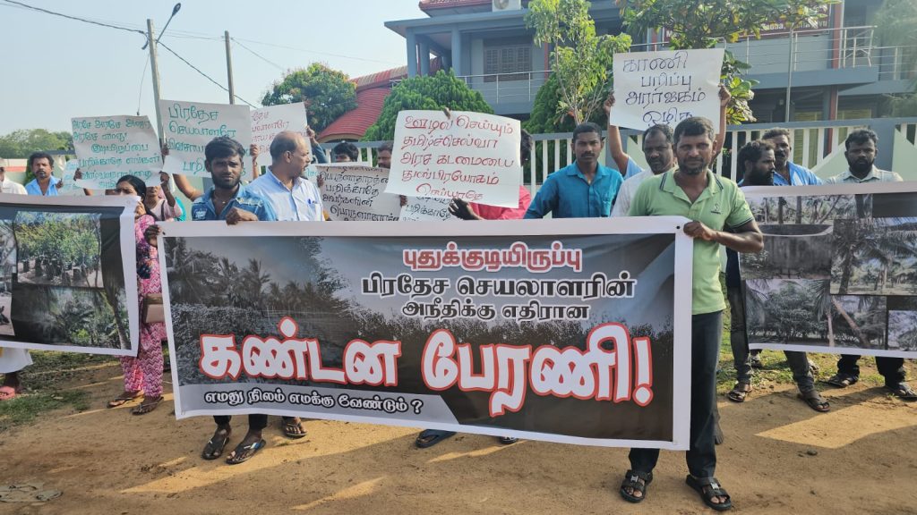 27.01.2026 முல்லைத்தீவு மாவட்டத்தில் புதுக்குடியிருப்பு பிரதேச செயலாளர் 60வரையான காணி உரிமையாளர்களுக்கு எமதிராக வழக்கு தொடரப்பட்டுள்ளதாக தெரிவித்து காணி உரிமையாளர்கள் முல்லைத்தீவு மாவட்ட செயலகம் முன்பாக கவனயீர்ப்பு போராட்டம் ஒன்றினை முன்னெடுத்துள்ளார்கள்.